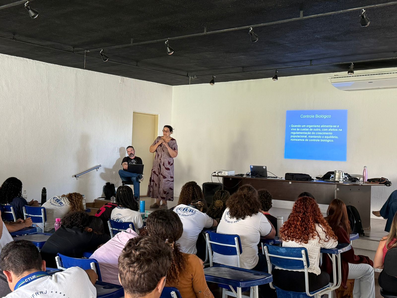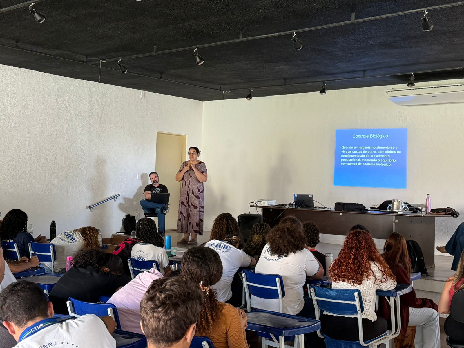 No dia 10 de novembro, o Laboratório de Controle Microbiano (LCM) marcou presença no Colégio Técnico da Universidade Federal Rural do Rio de Janeiro (CTUR/UFRRJ), promovendo um importante momento de integração entre o ensino técnico e a pesquisa científica desenvolvida na universidade. O encontro proporcionou aos estudantes uma aproximação direta com temas fundamentais para a Medicina Veterinária e para a Saúde Pública.